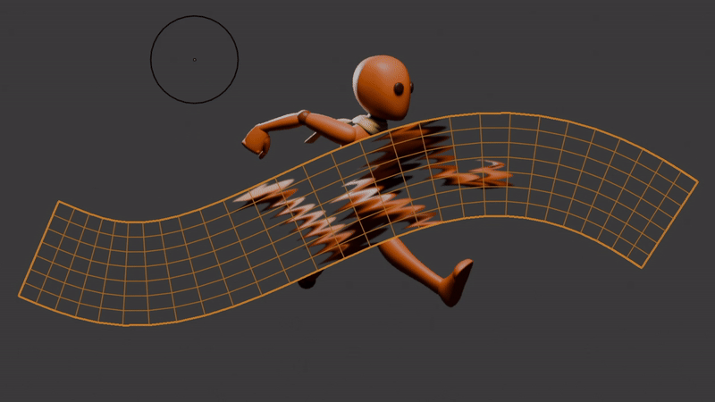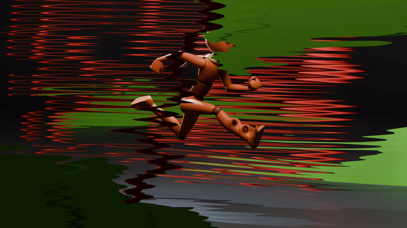 - and assigns a refraction shader that smudges the objects behind the lines according to the Grease Pencil lines' size, strength, and direction.